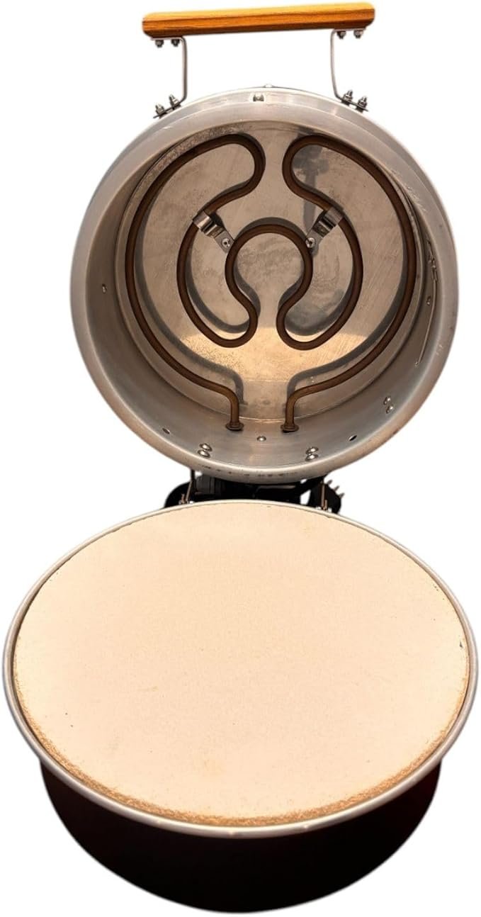 - Pedra refratária cordierita – A mesma pedra usada em fornos a lenha de pizzarias; mantém o calor estável e dispensa girar a pizza.